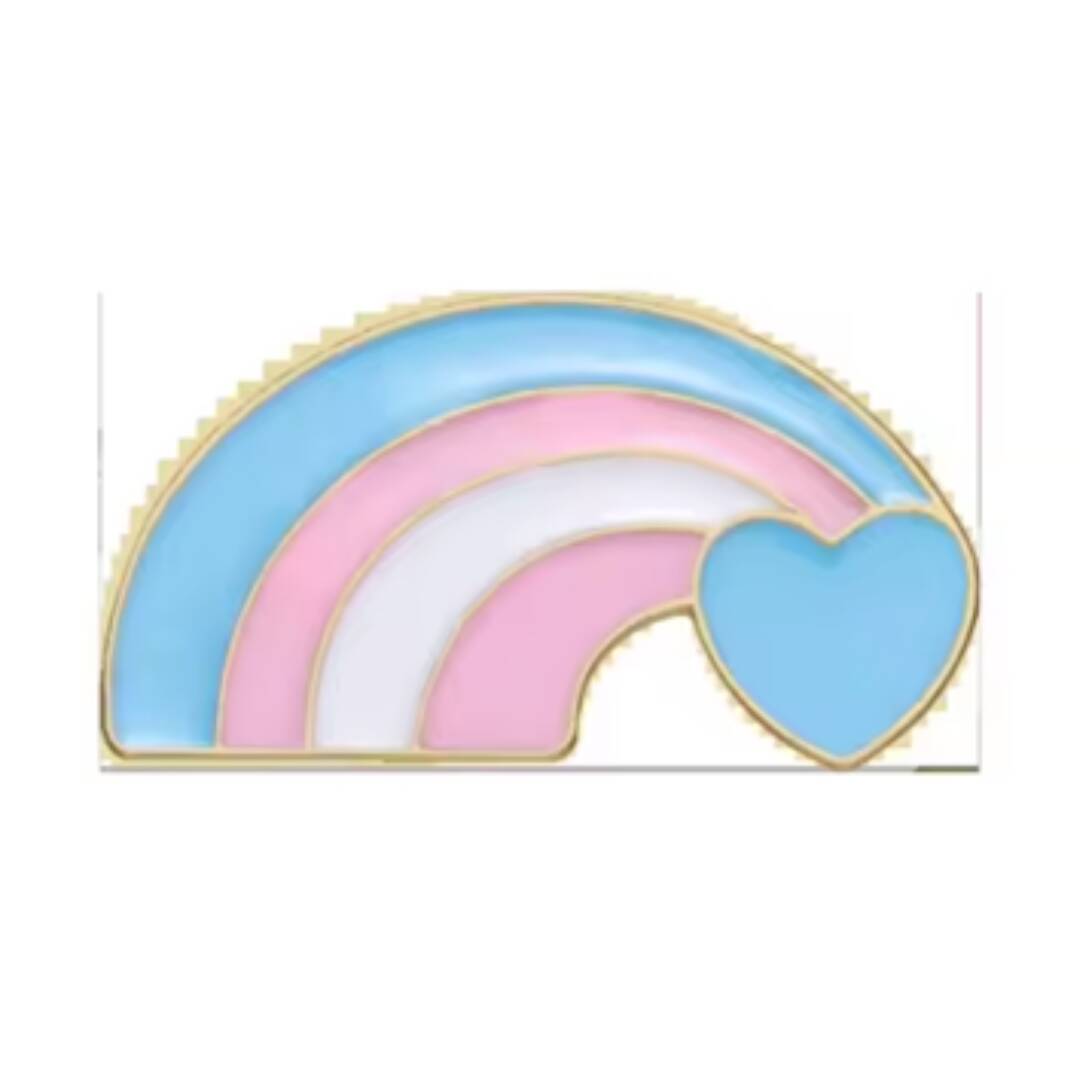 En nydelig trans regnbue pin. Med fargene fra transflagget, så er dette et kraftfullt symbol. Denne trans pin representerer stolthet, identitet og solidaritet. Transflagget har 5 striper, hvorav 3 ulike farger. Fargene er lyseblå, hvit og lys rosa. En vakker trans pin utformet som en regnbue. 🏳️‍⚧️