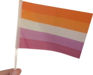 Et lesbisk prideflagg som er perfekt å ha med seg i pridetog, men også til å pynte med hjemme. Størrelsen er 14×21 cm, så det er et håndholdt flagg. 🌈❤️
